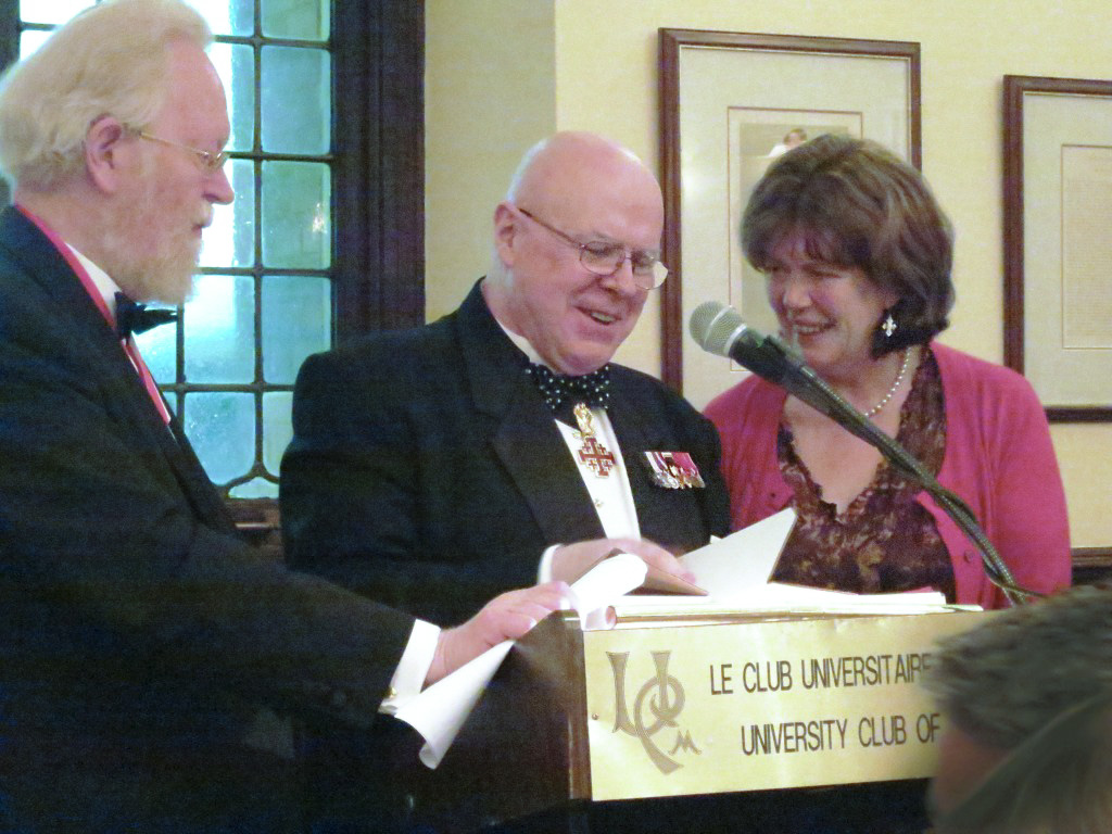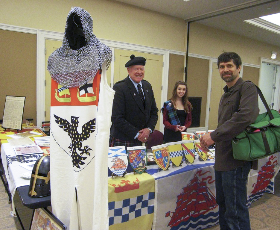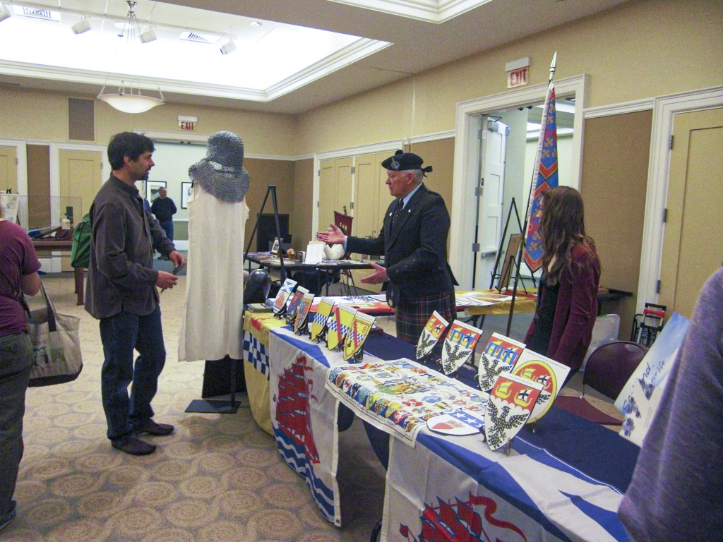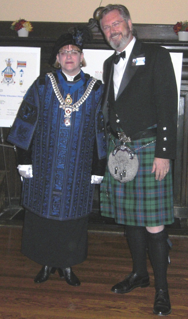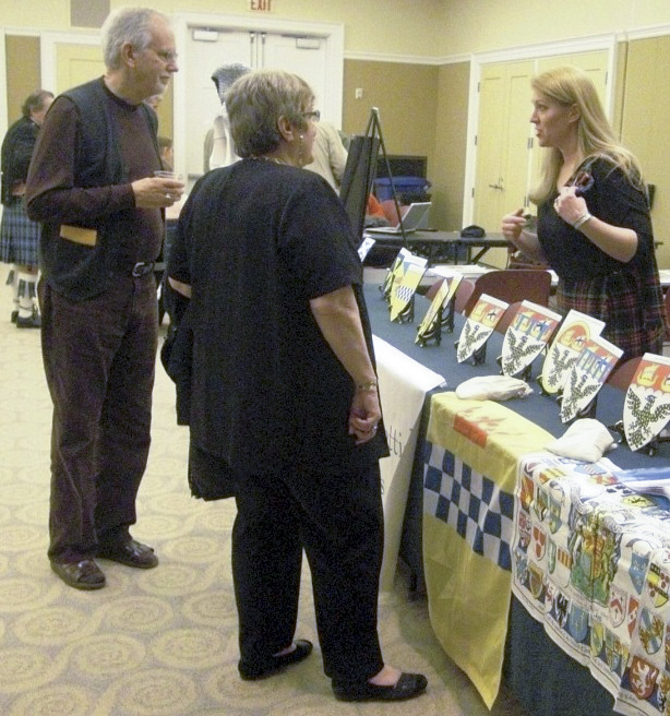 On Monday, 7 April 2014, Elizabeth Ann Roads, LVO, OSt.J, FSA Scot, Snawdoun Herald, Lyon Clerk and Secretary of the Order of the Thistle, gave a presentation on the origin and development of the Public Register of All Arms and Bearings in Scotland at the New York Genealogical and Biographical Society in New York City to a house packed to the rafters. Though we had corresponded over the years we had never met, so I was excited to see, meet and listen to Mrs. Roads speak. She made a PowerPoint presentation which was delightful, informative and humorous. She thoughtfully sprinkled the various reigns of Lyons with Letters Patent to Americans ( mainly colonists but also including a most recent set of Letters Patent signed by Lord Lyon Dr. Morrow). I would say more that half the audience were holders of honorary arms from the College of Arms in England and those of us who were Scottish armigers were amused at Mrs. Roads’ assumption and declaration of the pre-eminence of Scottish Armoury. Score one for the Lyon Office. After, we all enjoyed four, repeat four, different kinds of single malt Scotch with cheese & crackers.