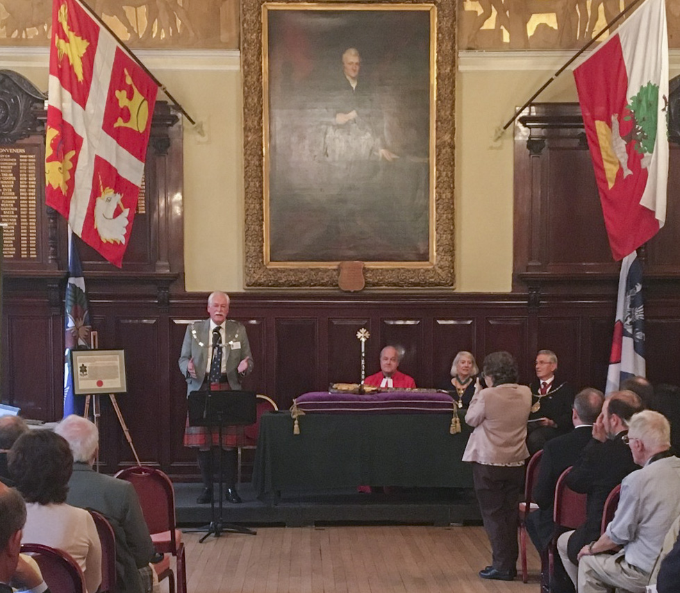 L to R: Your editor, then David V. White, Somerset Herald, and SSA Member John A. Logan.