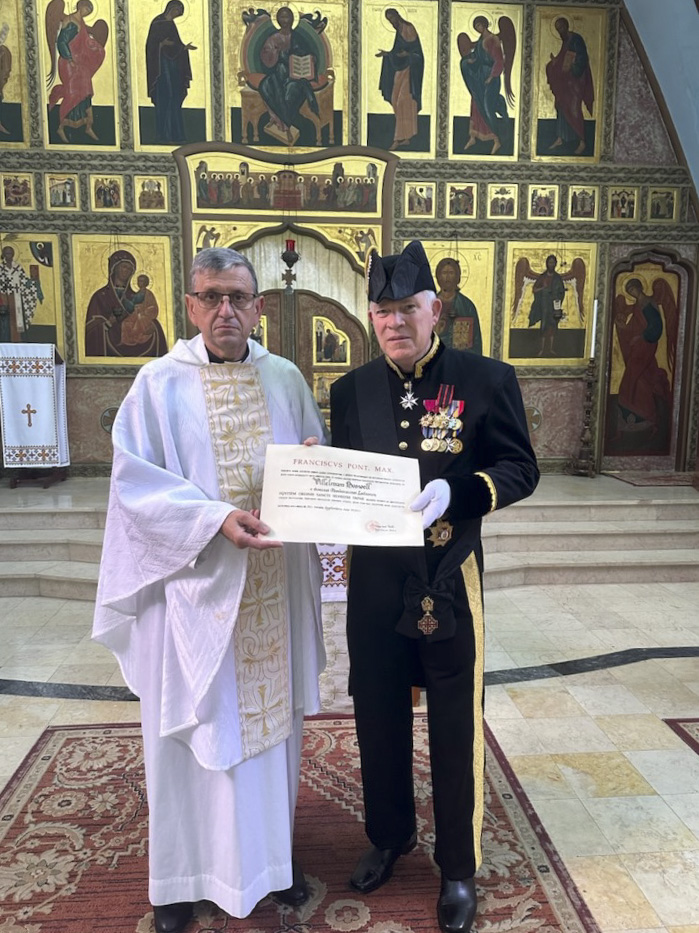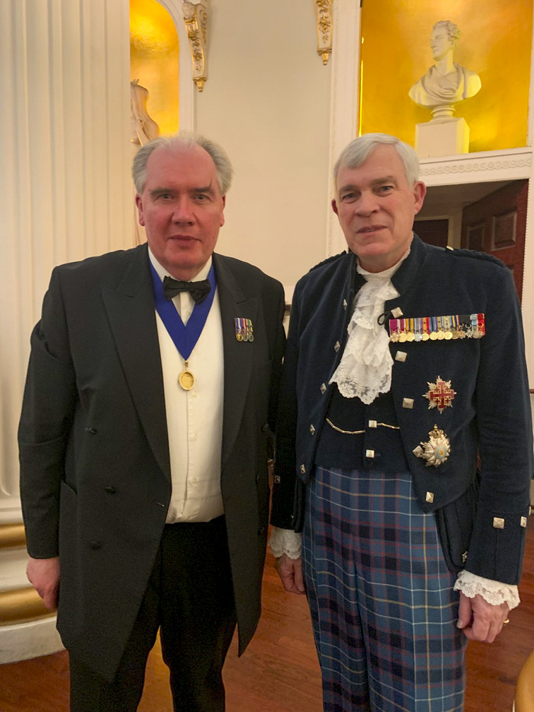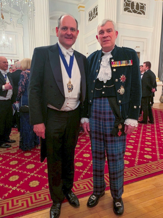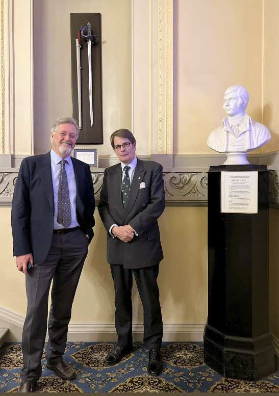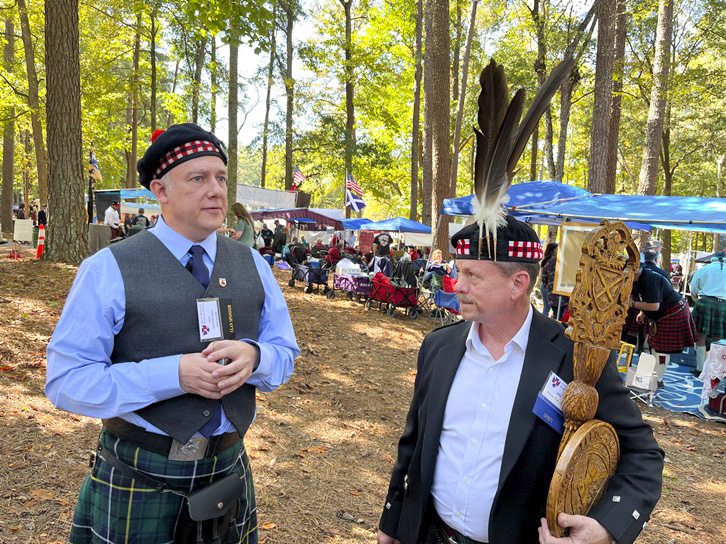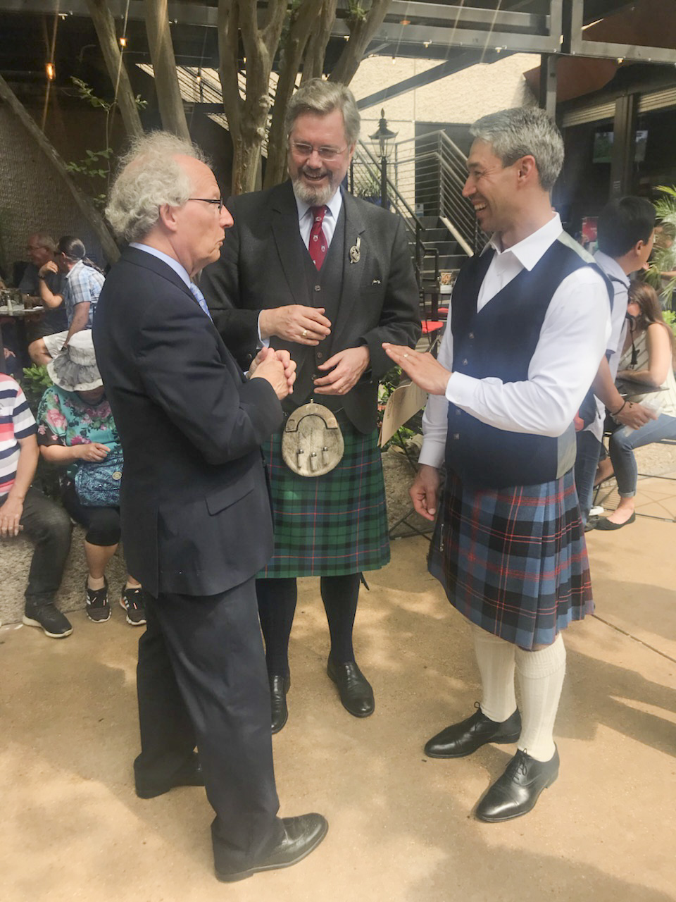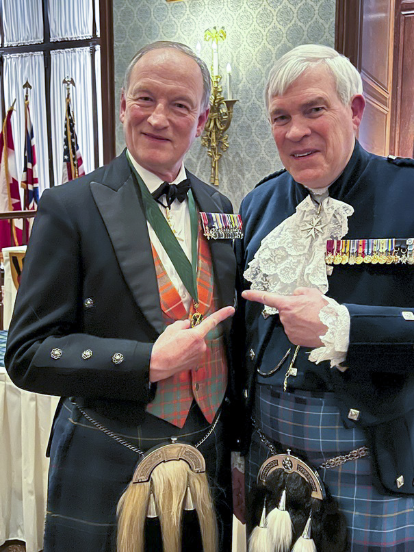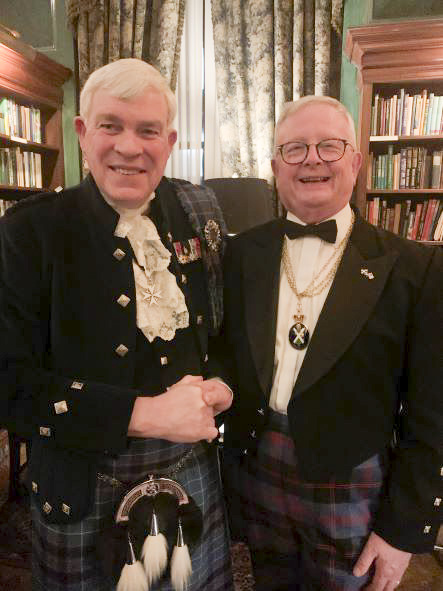 (L-R) Col. Wayne Morgan, USA (Ret.), SSA Board of Governors; Hugh Montgomerie, Earl of Eglinton & Winton, SSA Chairman; Brown McCallum, SSA Board of Governors; Paisley of Westerlea; Marquess of Tullibardine; Andrew Morrison, Viscount Dunrossil, SSA Vice-Chairman; Col. Bill Boswell, USAF (Ret.), SSA Board of Governors & Past Chairman; Col. Charles Shaw III, USA (Ret.), SSA Treasurer; and SSA Member Kent Atkins.