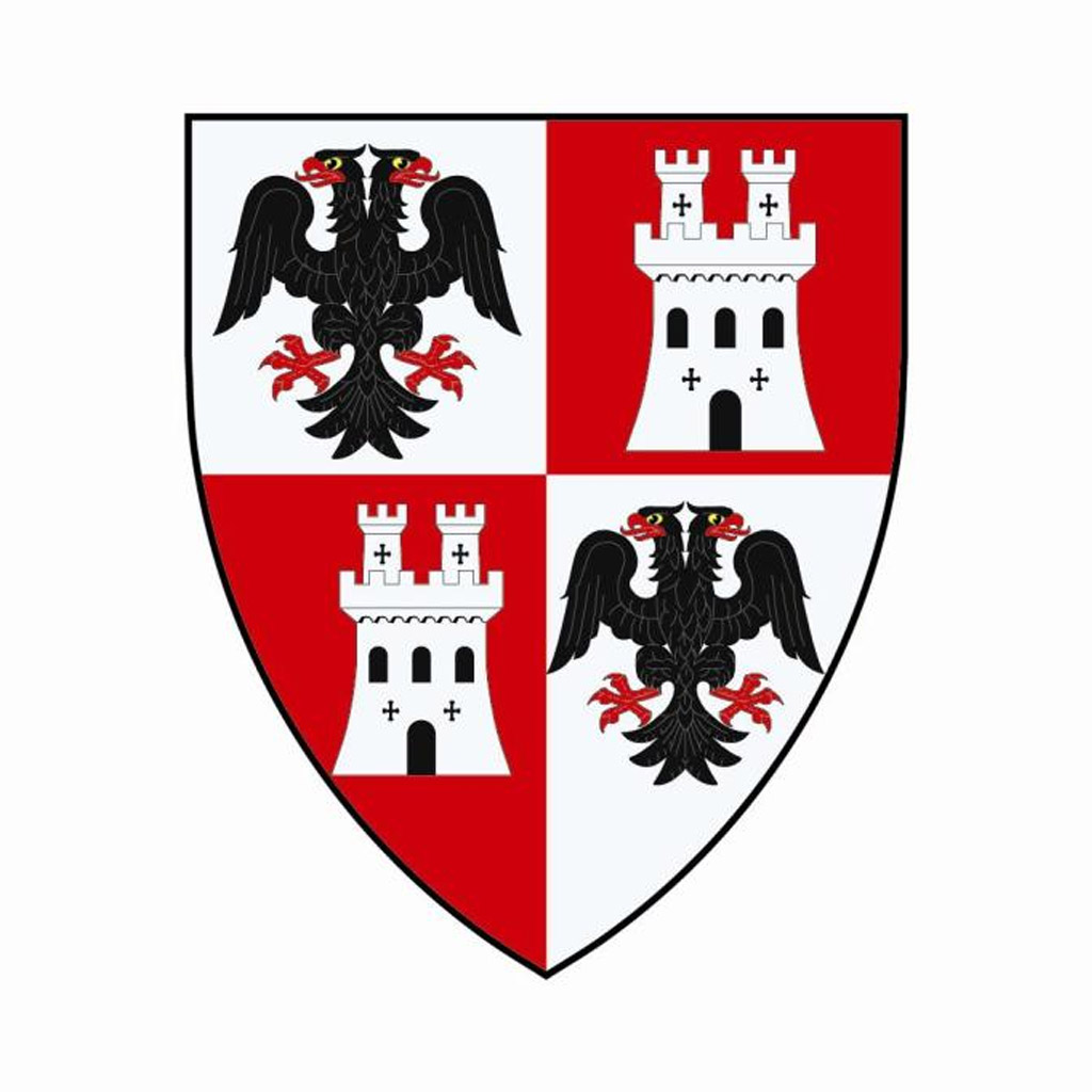 ARMS: Quarterly: 1st & 4th: Argent a double-headed Eagle displayed Sable; 2nd & 3rd: Gules a castle with two towers Argent.