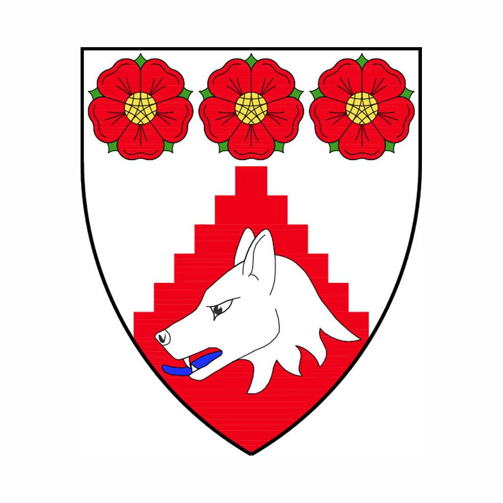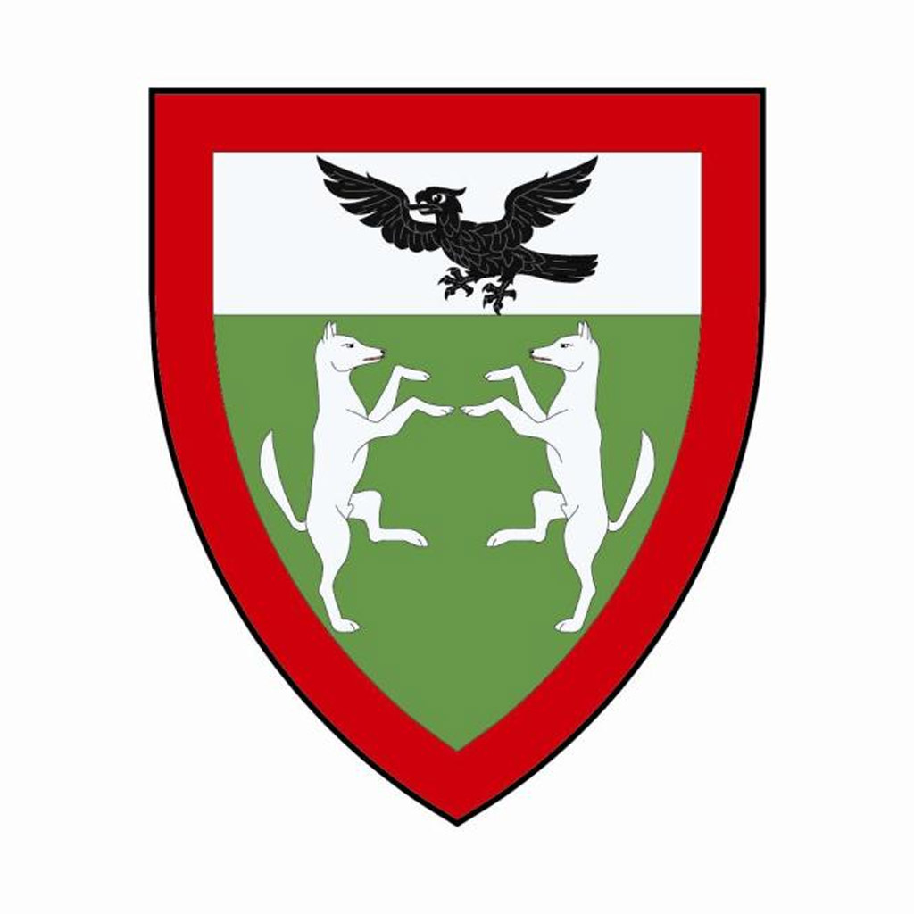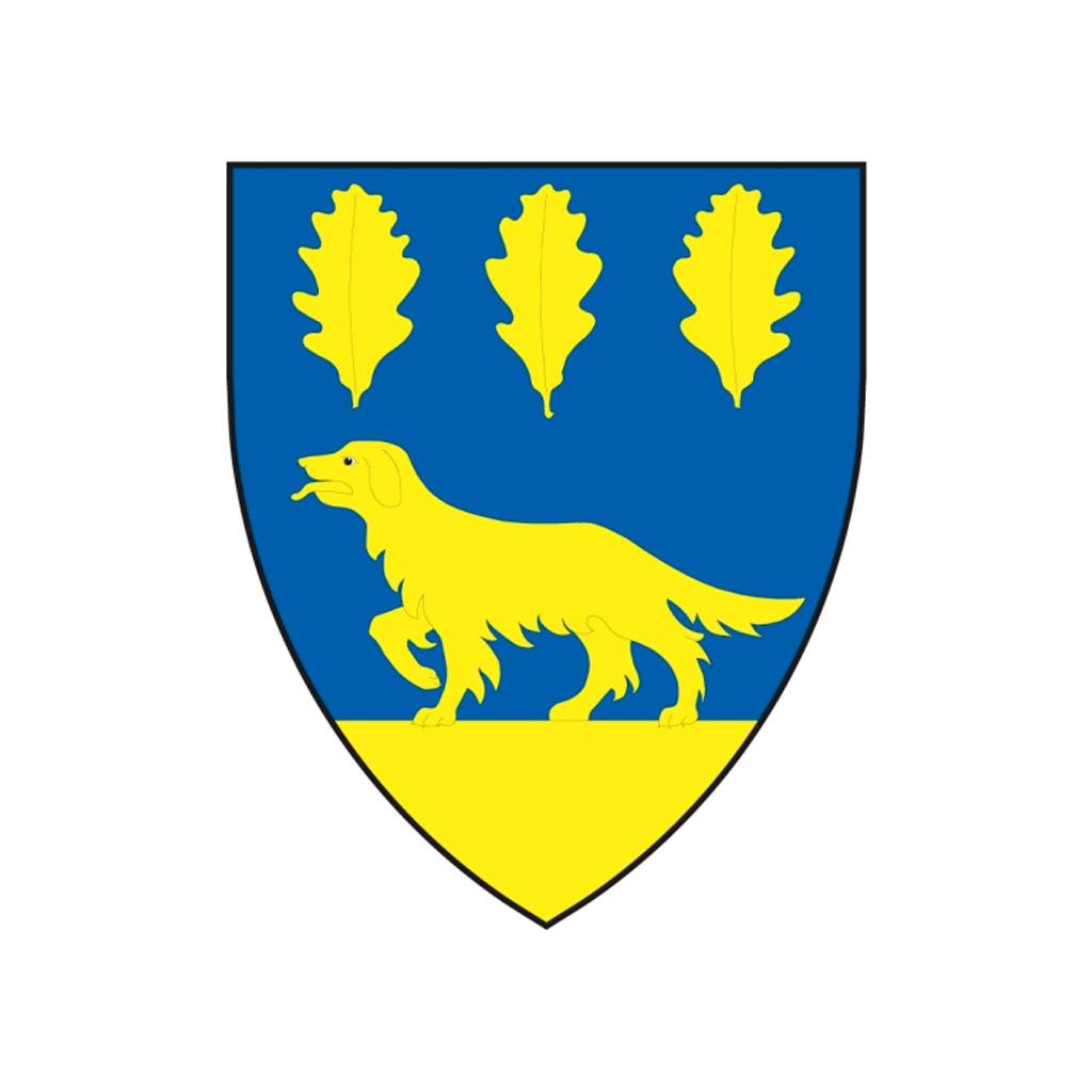 Arms: Azure on a base a setter passant, in chief three oak leaves erect, all Or.