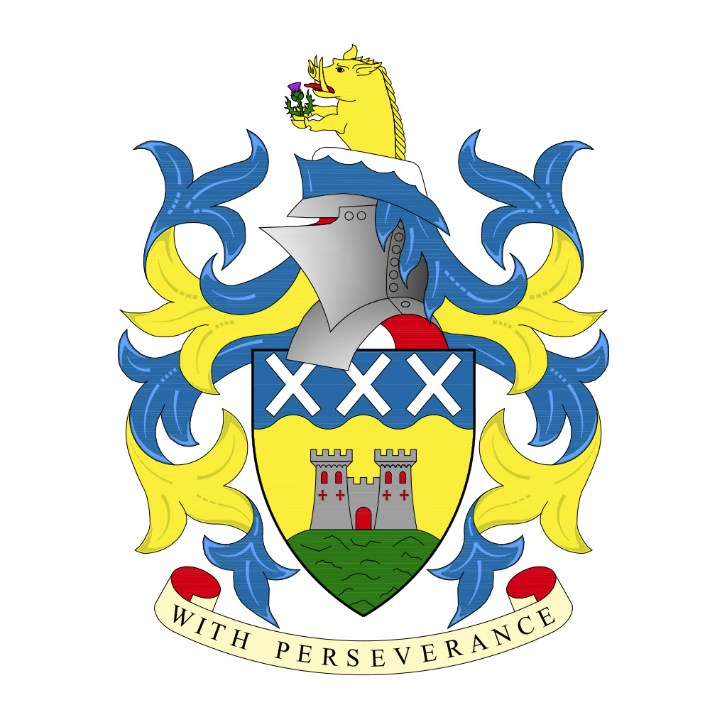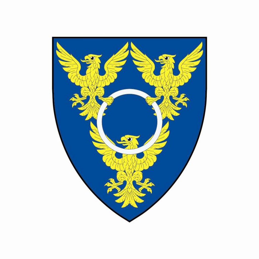 ARMS: Azure, three eagles displayed Or, the upper two holding an annulet Argent which debruises the third.