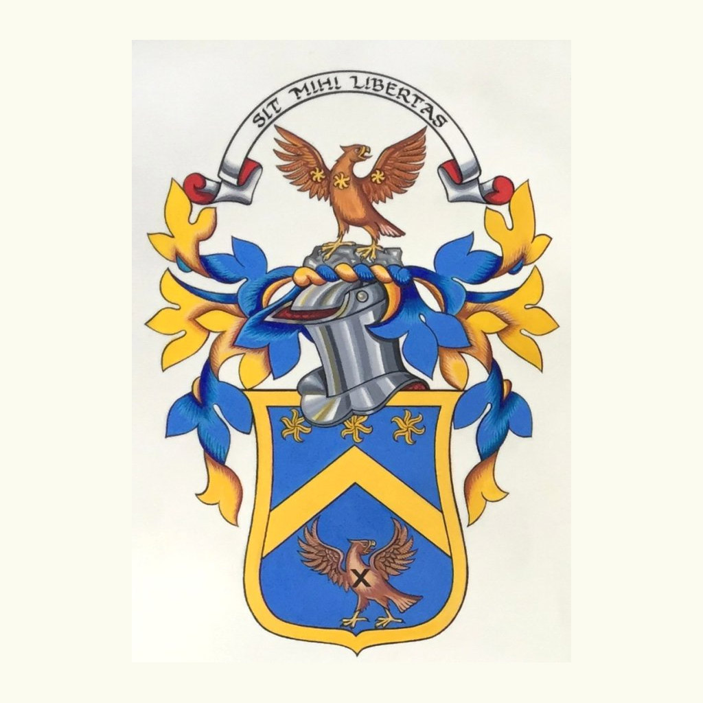 The arms were originally granted by Ulster King of arms on 7 November 1863 to an ancestor and matriculated for the petitioner with a suitable difference by the Lord Lyon and recorded in the Public Register of All Arms and Bearings in Scotland on 6 July 2017.