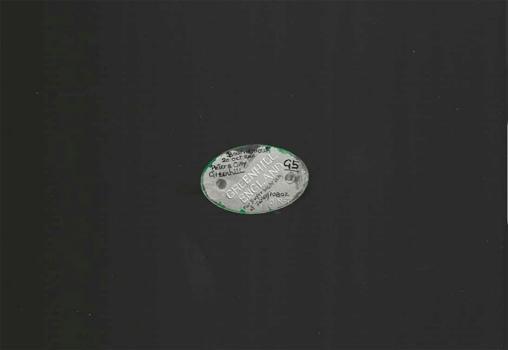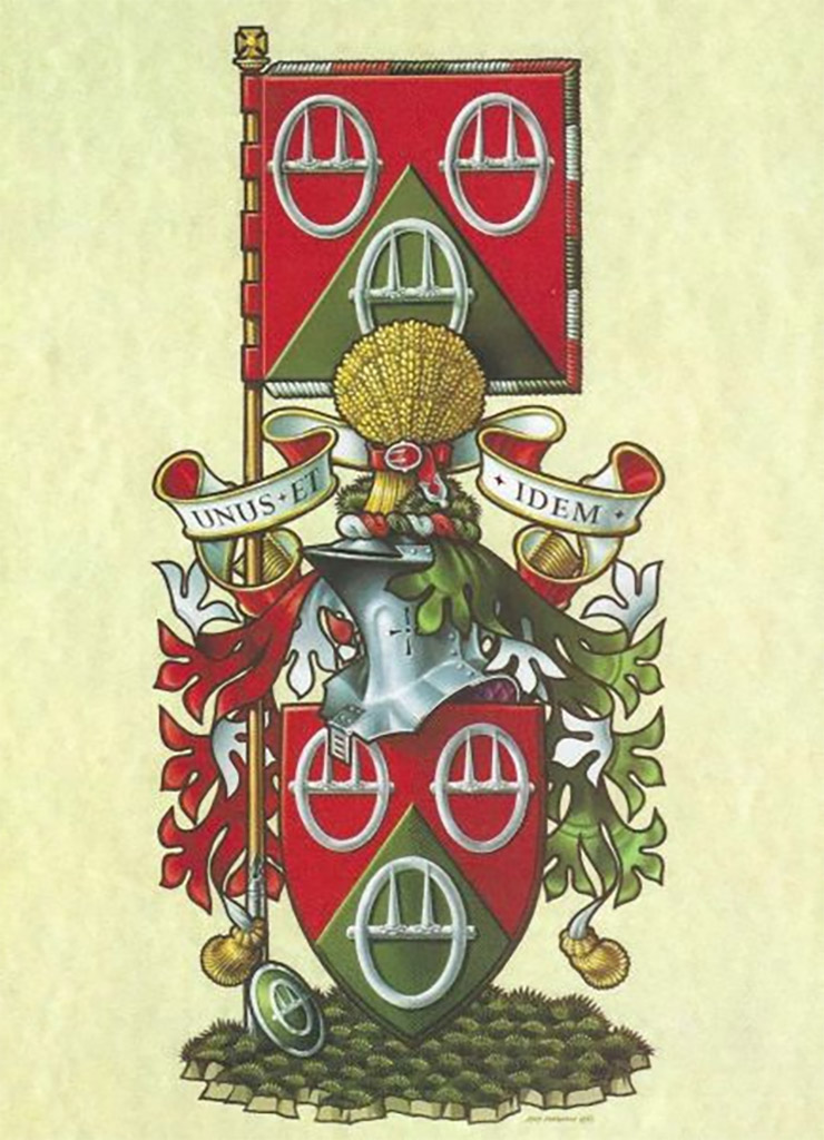 Peter Greenhill born in 1935 was granted arms by the College of Arms in December 1987. He is well known, with his wife his Gilly, for the production of some of the finest finished miniature knights in the world and as an author of books regarding same.