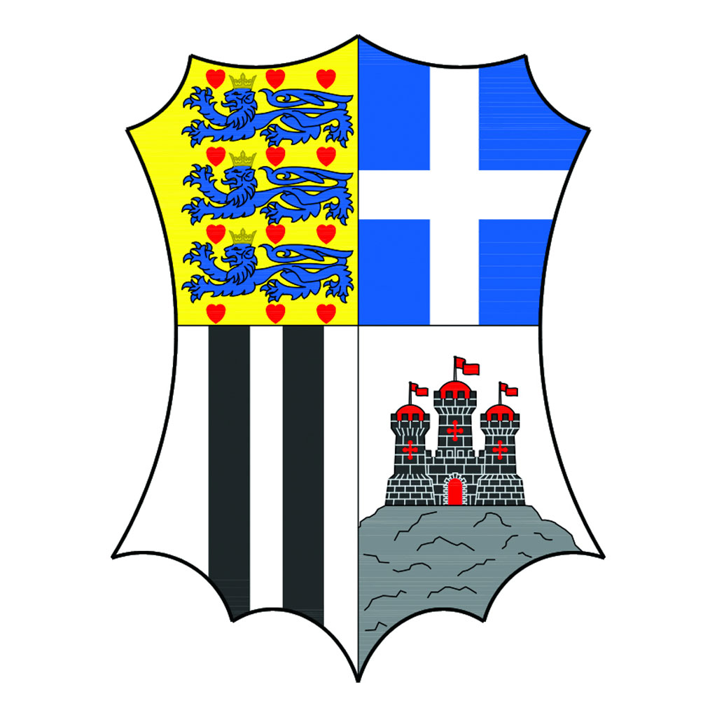 Arms: Quarterly: First Or, semée of hearts Gules, three lions passant in pale Azure (For Denmark), Second Azure, a cross Argent (For Greece), Third Argent, two pallets Sable (For Battenberg or Mountbatten), Fourth Argent, upon a rock Proper a castle triple towered Sable, masoned Argent, windows, port, turret-caps and vanes Gules (For Edinburgh)