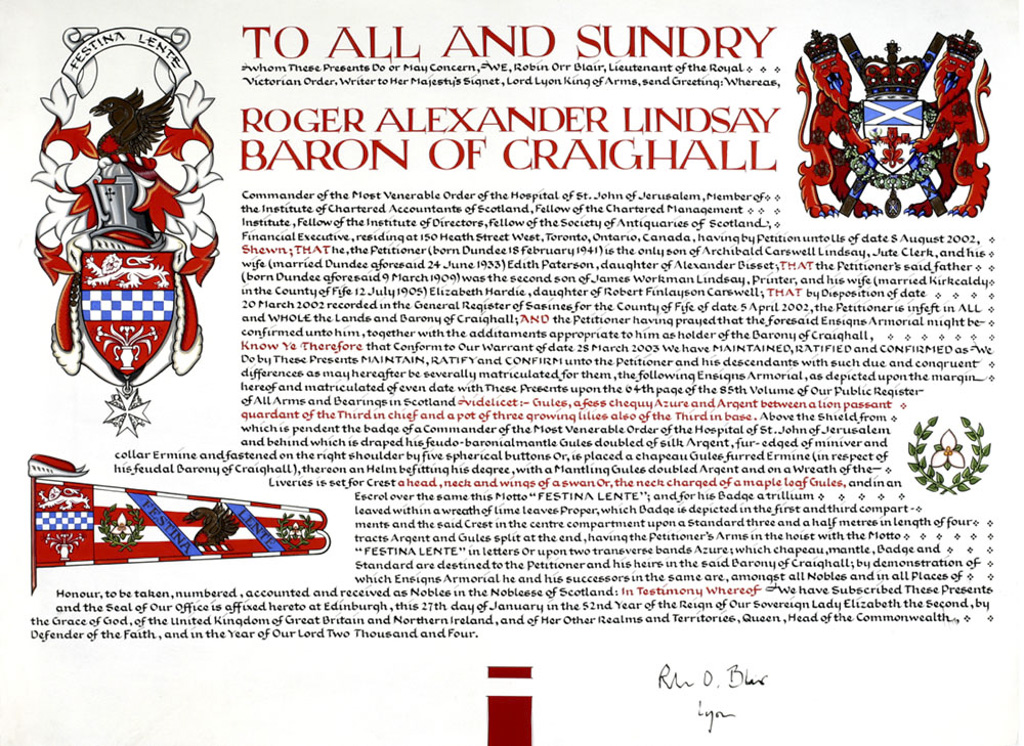 Charles McKerrell of Hillhouse is the current Commissioner for the EU and a Board member of the Society of Scottish Armigers