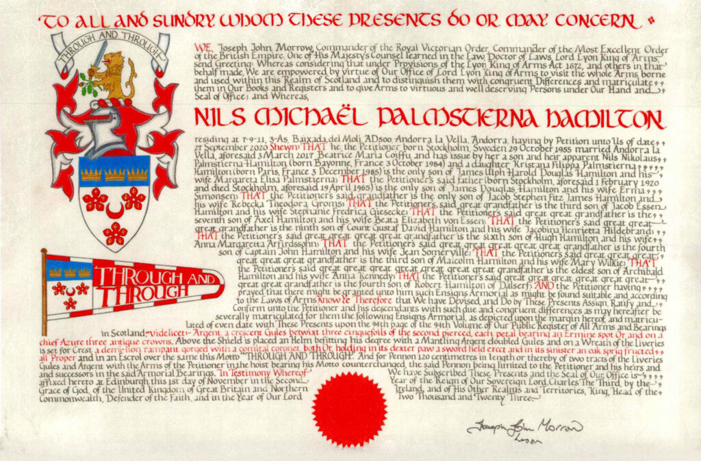Count (Greve) Nils Michaël Palmstierna Hamilton The Society is pleased to welcome Count (Greve) Nils Michaël Palmstierna Hamilton of the UK, France, and Andorra to our ranks as of 22 January Read More » March 24, 2026 No Comments
