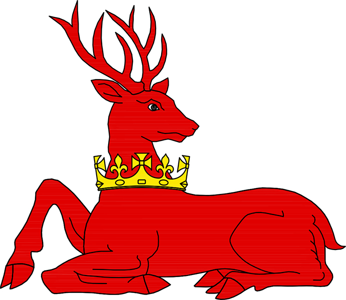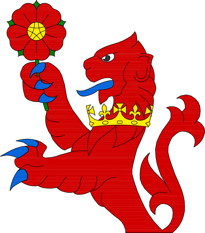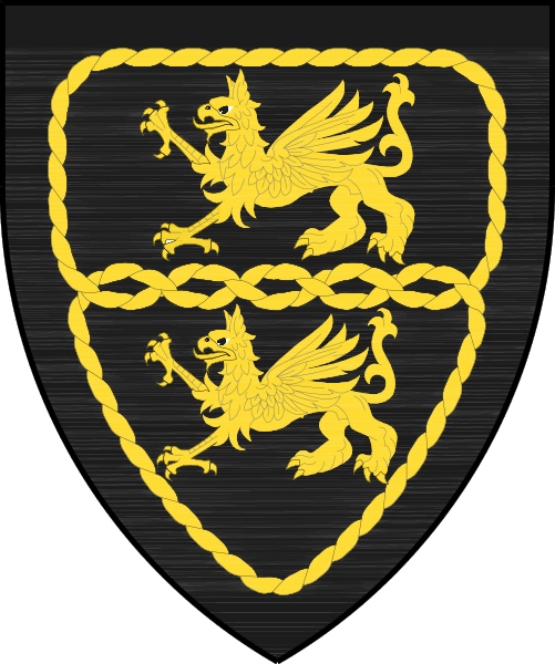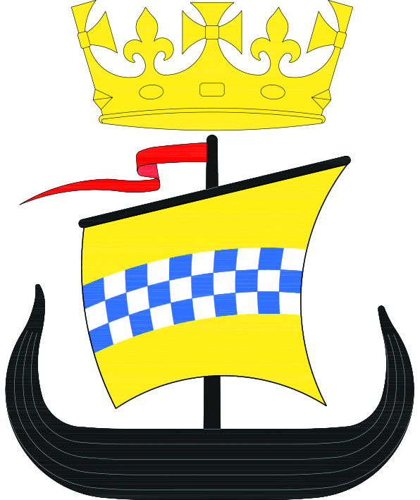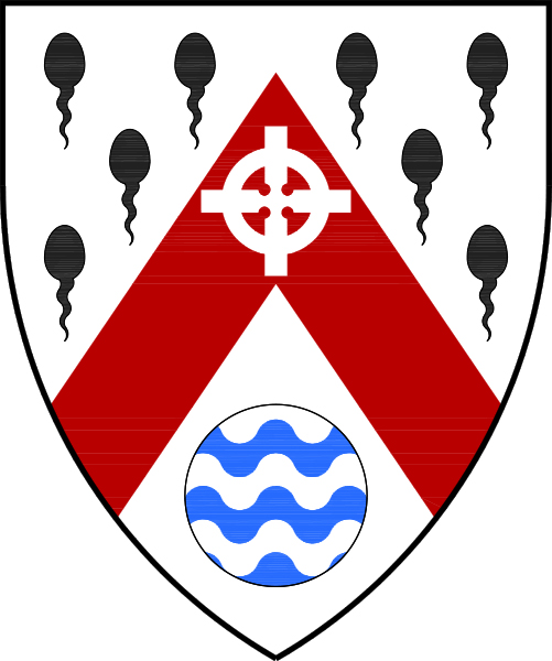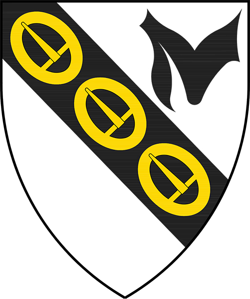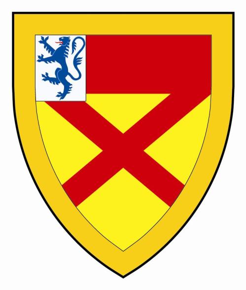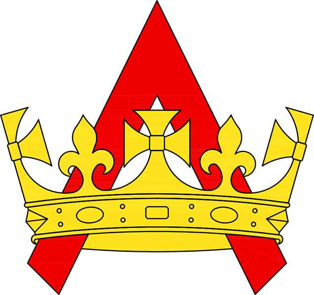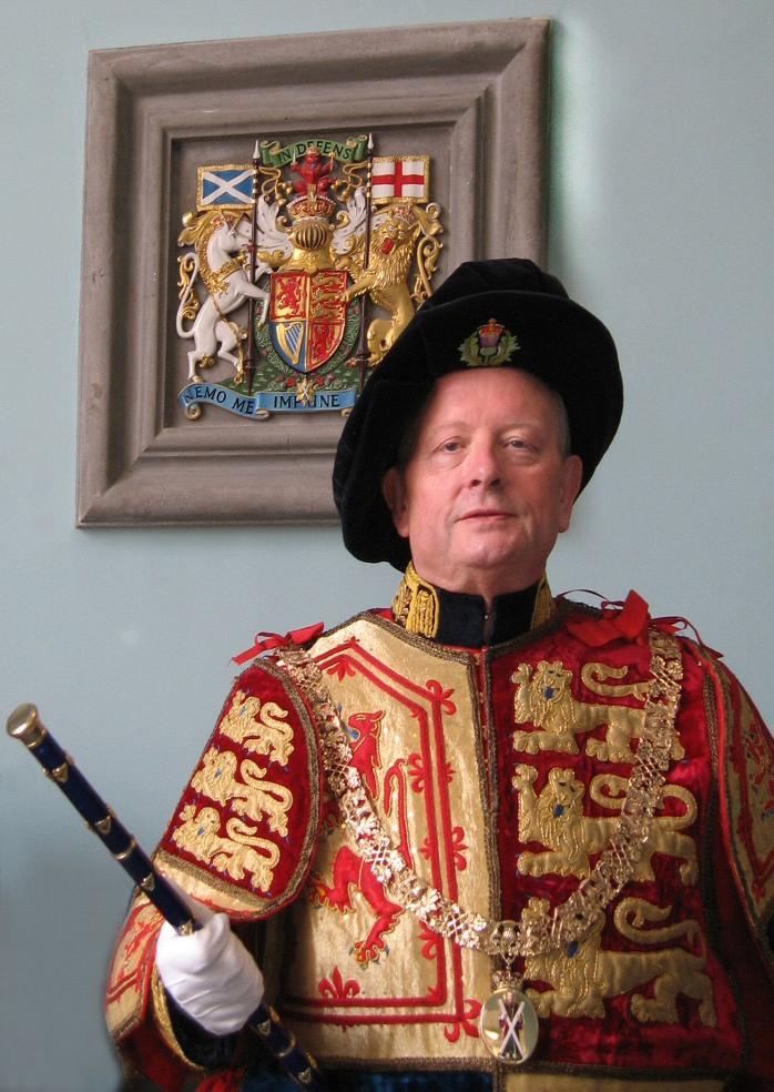 Blazon of the badge: A tower of three castellations Vert, masoned Argent, the dexter castellation Azure, charged of a saltire Argent, the sinister castellation Argent, charged of a cross Gules, all ensigned of the Crown of Scotland Proper.