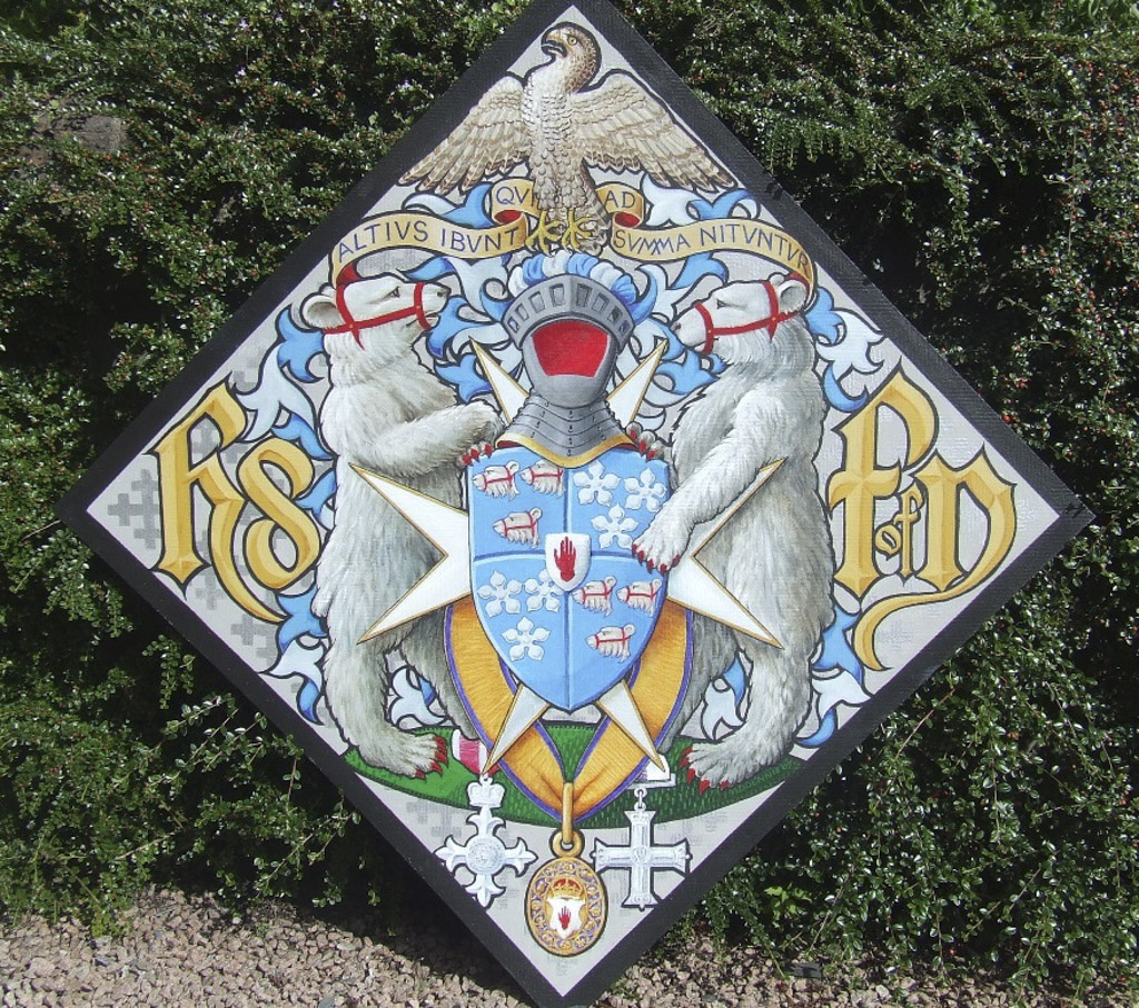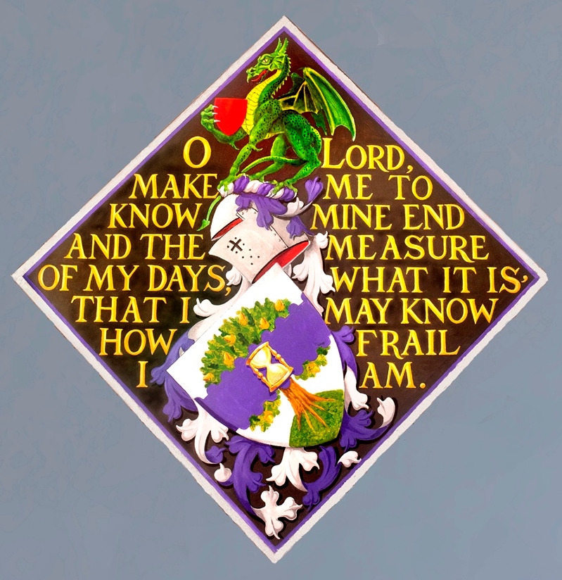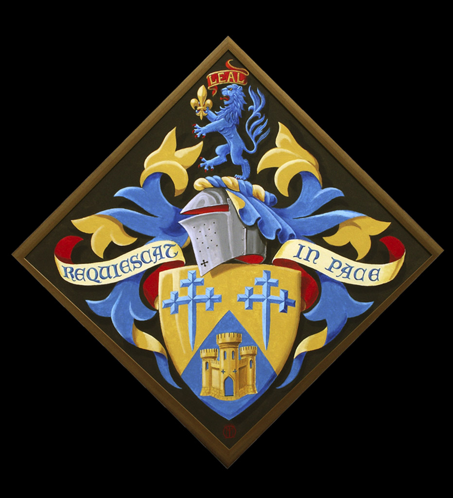 This hatchment of the arms of Frederick B Casely (1914-2008) was painted for him in great friendship by Mark Dennis.
