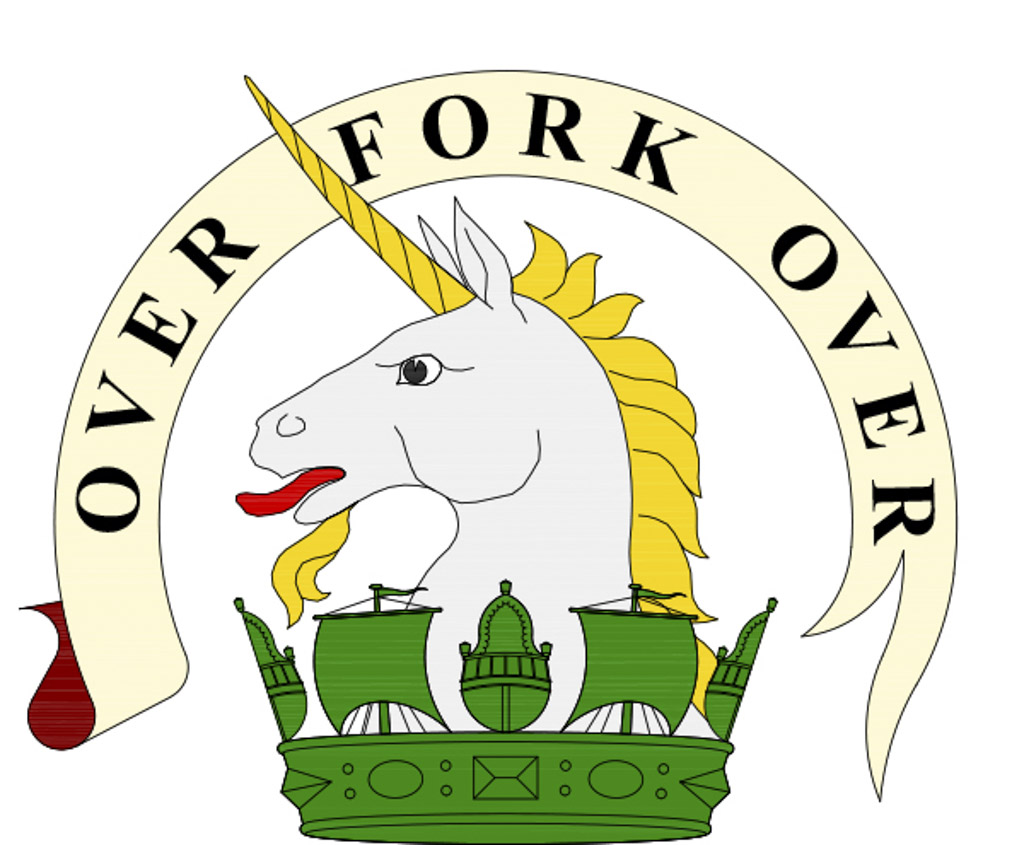 Blazon for Crest: Issuant from a naval crown Vert a unicorn’s head Argent armed, maned and tufted Or, langued Gules.