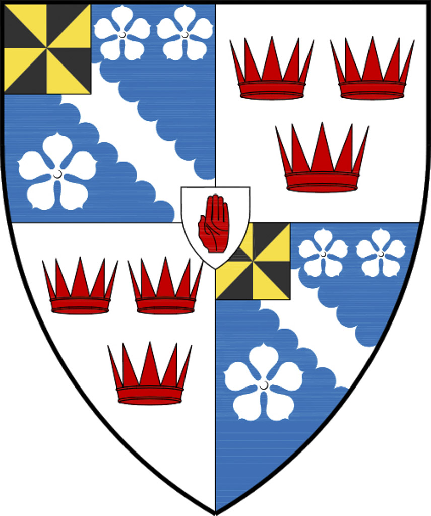 3rd Azure a harp Or stringed Argent (for Ireland)