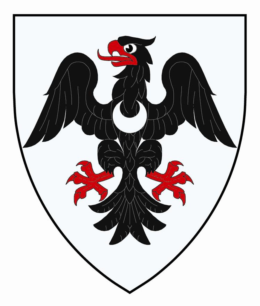 SHIELD: Argent a double headed eagle displayed Sable armed and langued Gules with an