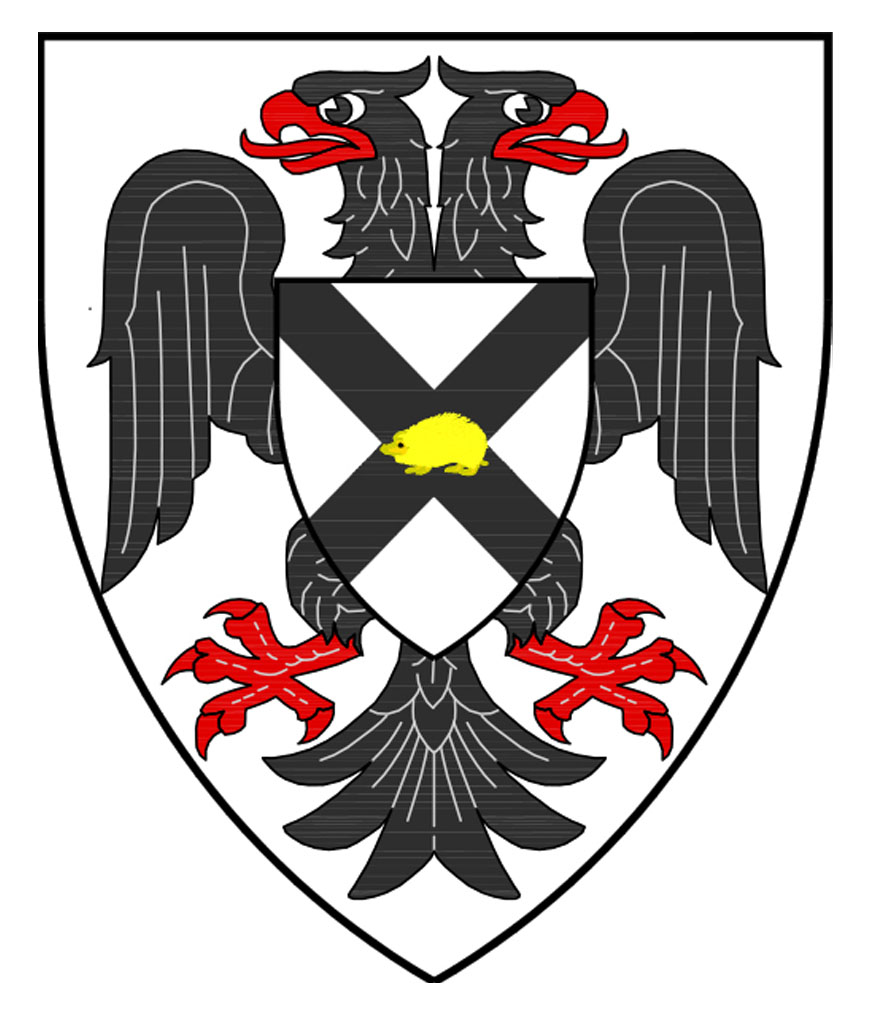 inescutcheon Argent charged of a saltire Sable bearing at its centre point an urcheon Or
