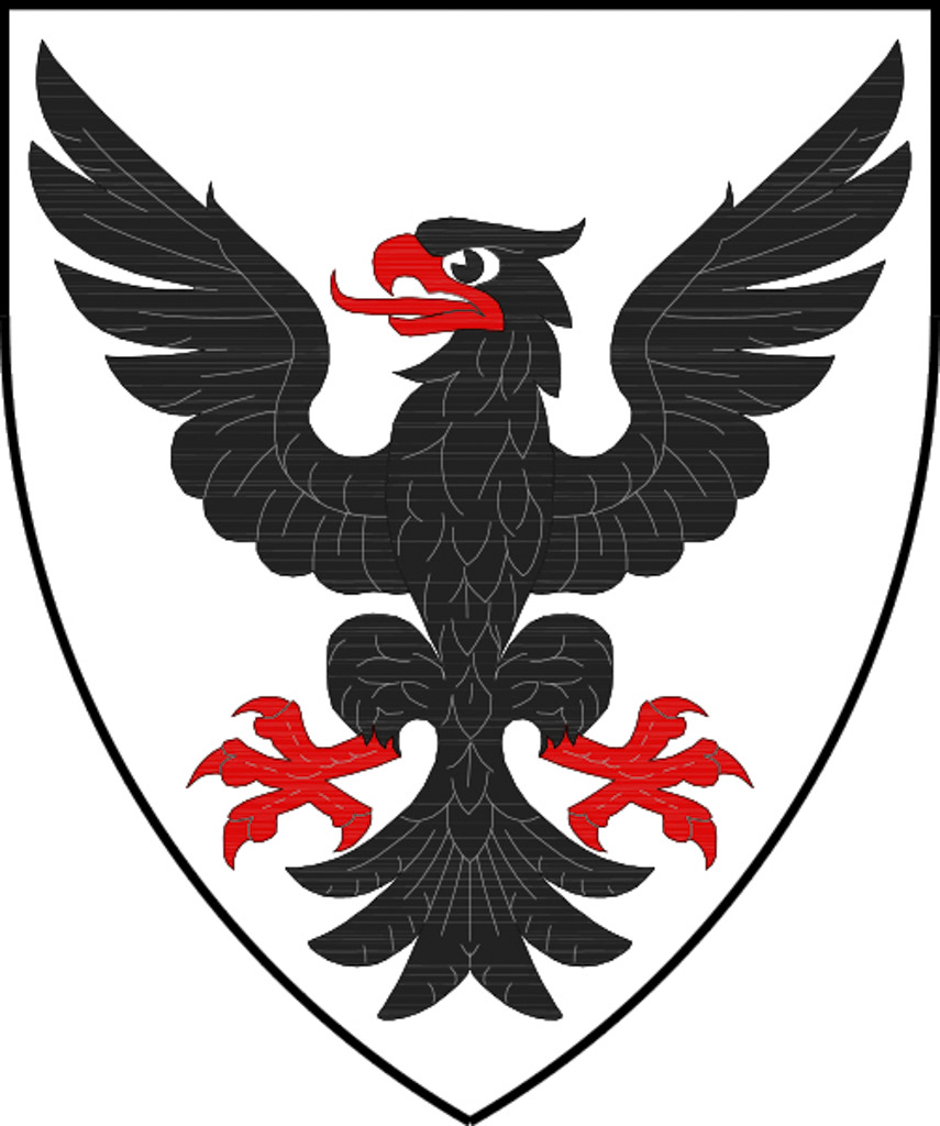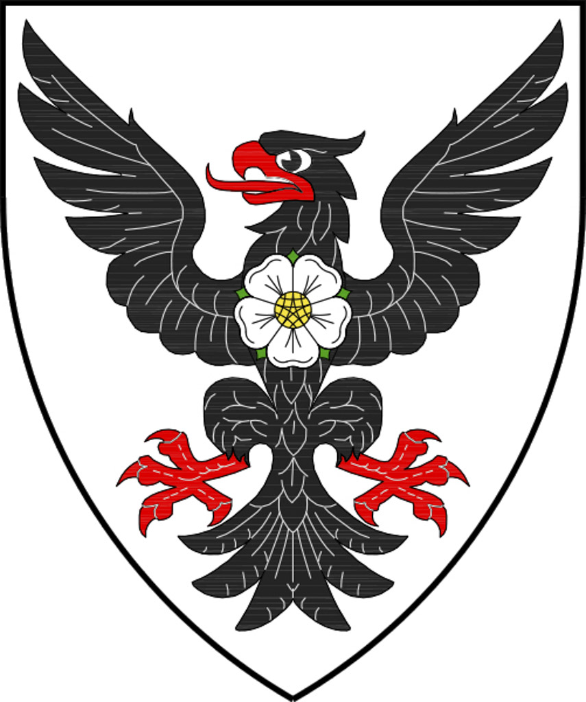 Arms: Argent an eagle displayed Sable and charged on the breast with a rose Argent.
