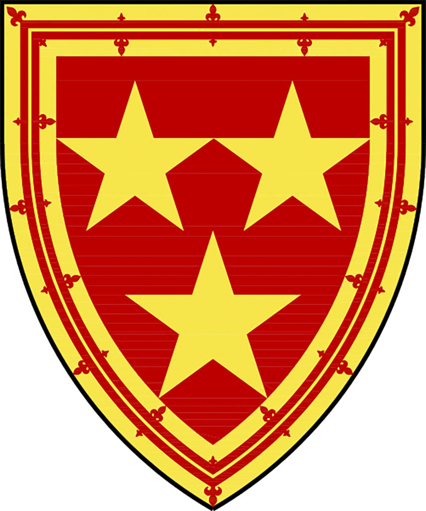 Arms: Gules, three mullets Or on a bordure Or a double tressure