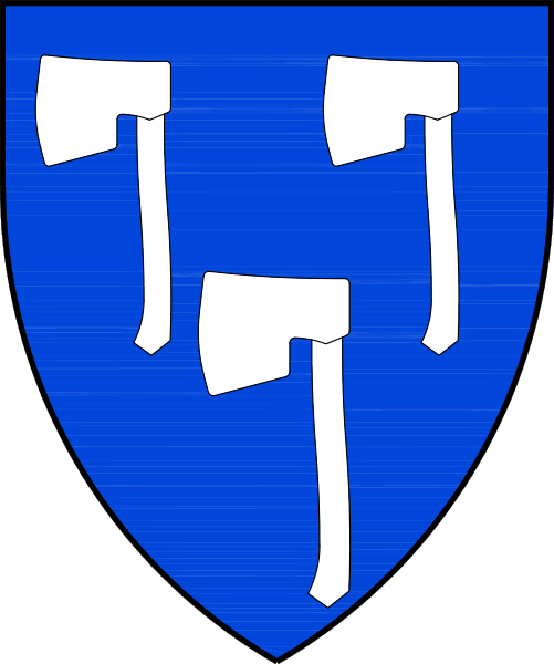 Arms: Azure three broad or wright’s axes palewise Argent 2 and 1.